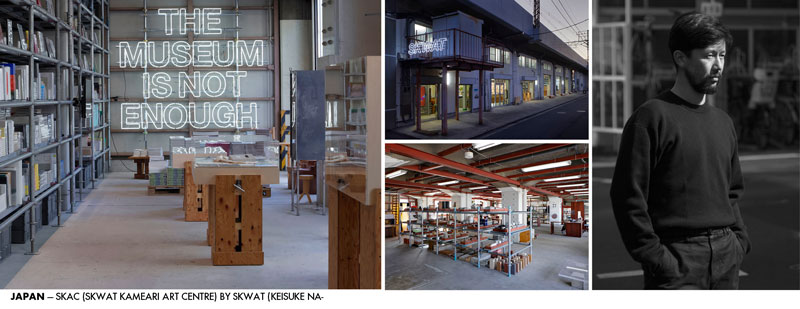 Cultural & Art Projects. Situated in Tokyo’s eastern suburbs, SKAC serves as a creative hub where visitors can experience art, design, architecture, food, music, and nature. The under-track space—stretching about 800 meters—is being redeveloped to include new shops, cafés, and pedestrian passages that connect the north and south sides of the railway. By linking the station area with nearby residential zones, the project encourages new forms of local activity and interaction, revitalizing the urban landscape and fostering a vibrant cultural network between Kameari and Ayase. SKWAT is a project led by Keisuke Nakamura, founder of the design office DAIKEI MILLS, that temporarily occupies and reimagines unused urban spaces. Established in 2019 and inspired by London’s “squatting” culture, Nakamura’s initiative—distinct from conventional client work—spontaneously transforms urban voids into creative environments, culminating in the evolution of SKAC. www.instagram.com/skwat.site