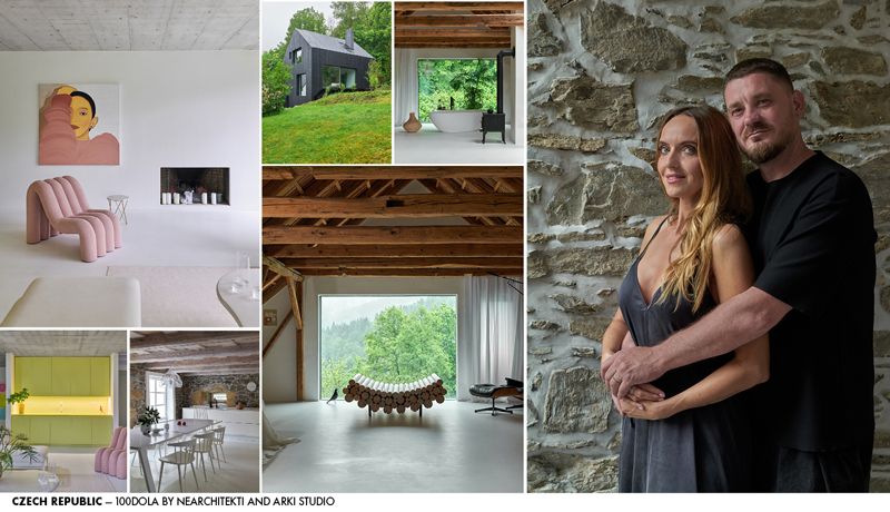 “After the boutique guesthouse Bezové údolí and the successful renovation of their home in a traditional timber cottage, the Hošek family returns with another project — 100dola. Once again, it’s full of bold ideas, striking in its minimalist clarity, and rich in surprising contrasts. Simply beautiful!”