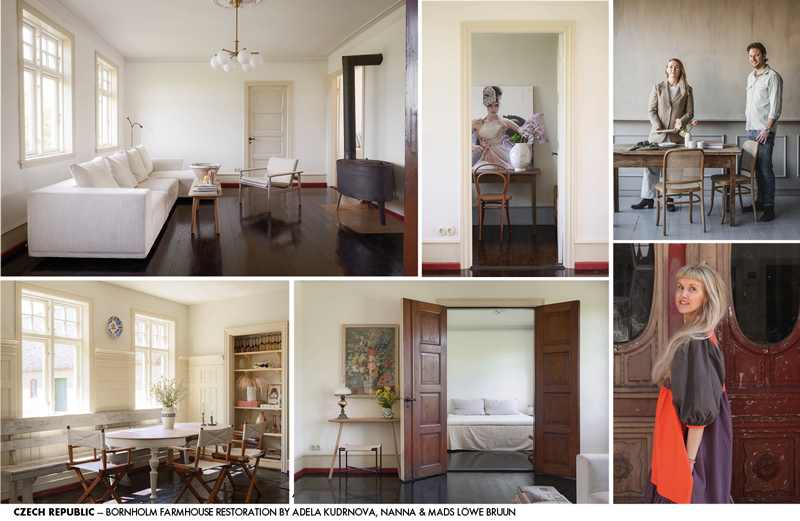 Private Home. On the Danish island of Bornholm, Nanna and Mads Löwe Bruun transformed a traditional farmhouse into a soulful retreat that embraces Nordic simplicity and slow living. Together with Czech interior designer Adéla Kudrnová, they sensitively restored the early 20th-century home using local craftsmanship, natural materials, and traditional techniques. The couple managed the entire renovation process – reviving the building’s original structure, repainting floors and windows by hand, and reintroducing historical details inspired by Bornholm’s carpentry heritage. Kudrnová collaborated as an architectural consultant, suggesting layout adjustments, built-in niches, and a bespoke kitchen design. The result is a poetic, authentic home without modern distractions, where light, texture, and time define its quiet elegance – a place to slow down, reconnect with nature, and live deliberately.