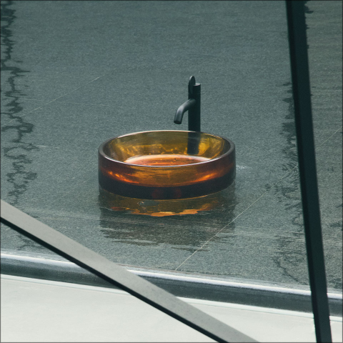An unprecedented design that really pushes the boundaries of glasswork as a result of an intense research process developed in the glass furnaces of Murano (glass). Marco Zito, a product designer and lecturer at the IUAV University in Venice with 30 years’ experience in the design world, is the man behind this collection, with its distinctive washbasins—available in transparent and amber versions—and the uneven surfaces that serve to enhance their sculptural character. Unlike its blown counterpart, cast glass absorbs and refracts light, creating iridescent effects. An unusual combination of experimentation and craftsmanship that pays tribute to the material and its expressive nature.